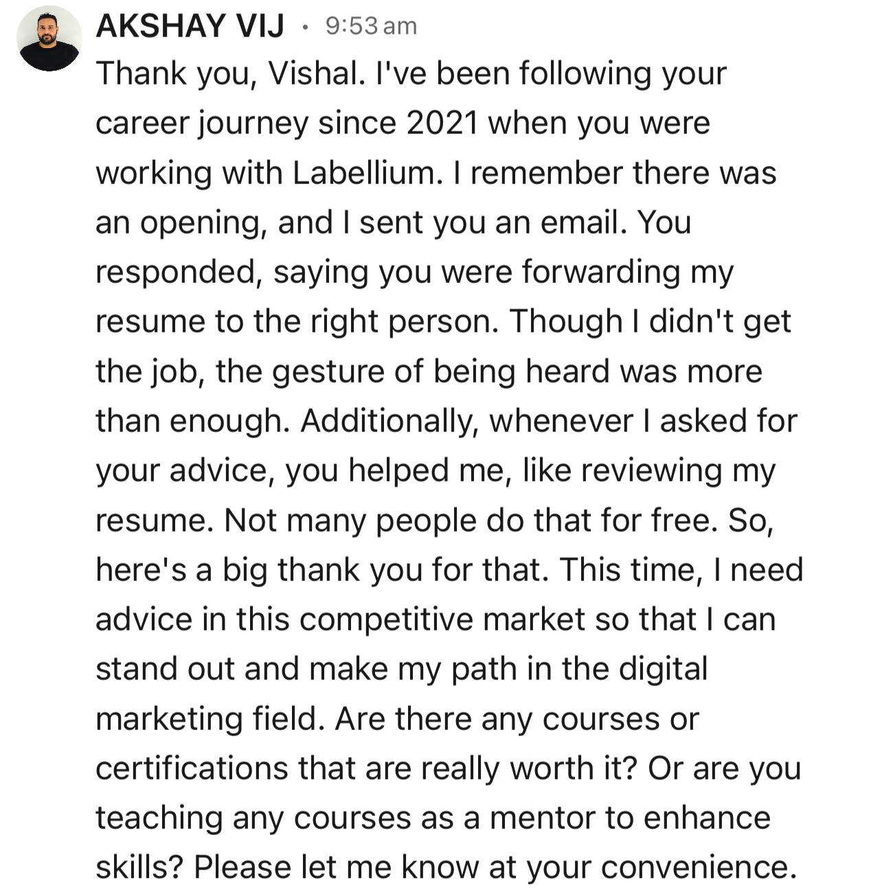 I got this DM a few days back: along with a few others. Thank you to all those who reached out. I appreciate it a lot. <3 So I figured I would take this opportunity to share what's been going on with me over the past few months. Part 1The death of my niche - For the past 4 years I enjoyed talking about personal branding but over the past year I realized that what I wanted to talk about and the type of content I wanted to create had changed. I wasn't really talking about personal branding (specifically) anymore... My "niche" wasn't really Personal Branding. But I had it on my profile and part of my identity for so many years it felt weird to think of taking it off. Furthermore... I had created a course on how anyone could build their personal brand. 37 lessons and 4.5 hours worth of content that I poured my heart and soul into. (My goal for Q1 this year was to complete the course) But, I never officially launched this course. I kept waiting for the "perfect moment", working on the "perfect launch" & that moment never came. So, I'm going to share the link to it here: Personal Branding 101 - Vishal Joseph :) Overall, during this time I was a mess. So I made this video - "The death of Personal Branding". I've accepted that my journey as a creator is in (still) figuring out what I want to create. It's not like I have a Million followers, but I do what I do for the small impact I feel like I am able to make: I have tons of these to remind myself of WHY doing what I do outside of my 9-5 job matters. But somewhere along the way I got way too obsessed with the outcome and I forgot about enjoying the journey... I started having thoughts of "Where is all this leading to?", "Will I be able to quit my job and do this full time?" "Do I want to do this full time?"... I felt like I wasn't able to find joy in my 9-5... Like I had no particular goals and didn't have any dreams of what my career would look like... But before I could post the video or think further on this... Life had a surprise in store for me... Part 2Sometime in June I got a call from my doctor saying that there was an abnormality in one of my tests. The doctor said it's fully treatable, but I would have to undergo a surgery followed by some special treatment. (I'm being vague and cryptic on purpose) After which I would take 2-6 weeks to recover. Since I got this news, almost everything in my life changed. Suddenly the priorities in my life shifted and I started looking at what my life really stood for. What is the quality of the relationships I have in life? What stage is my career in? Did I do the things I always wanted to do? Am I happy in life? I got lucky with my situation (in that its treatable and not at a challenging stage) but I realized that not everyone is as lucky and some people don't really have the luxury of time. So I took some time off from creating content... I even paused recording episodes for the podcast because the last thing I felt like doing was talk about creator stuff... It felt forced... Even though I love the creator economy... I just wasn't feeling it... I started doing other things.. Spending more time with the people I cared about. I started painting and finishing up on the multiple art projects I had in mind. Part 3So what's next? I wrote this letter on August 21st, 2024 "Today I go into surgery and then will be recovering for a few weeks after. I hope to come back with a fresh perspective. I don't want to be on this hamster wheel of short form content anymore. I want to start again and feel the excitement of building something new. Thank you for reading my emails and for replying to them and being a part of my journey so far. See you on the other side." but I didn't hit send for multiple reasons. Biggest one being the pressure from some of the people close to me to not share the details of what I am going through. Something I am still fighting and trying to understand for myself. Today I'm happy to say that the surgery went well, I feel great and a lot more has happened since then and I'll be sharing more with you. You can expect me to share more of the details around my experiences and learnings every week moving forward. If anything I hope that this email is a reminder for you to call that person you love, message that old friend or do that thing you always wanted to do. Tomorrow really isn't guaranteed. I know it might seem like a cliche, but it's a cliche only until it happens to you. So create, travel and do the things you always wanted to do. See you next week. Love, VJ |